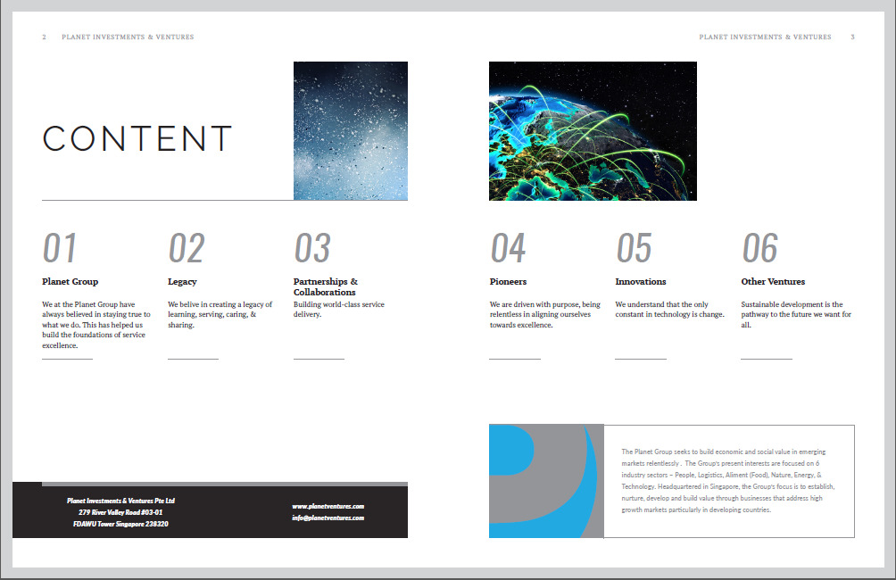 - Enhanced Communication: The brochure now effectively communicates Planet Group’s mission, values, and industry focus, providing a professional and engaging representation of the company.